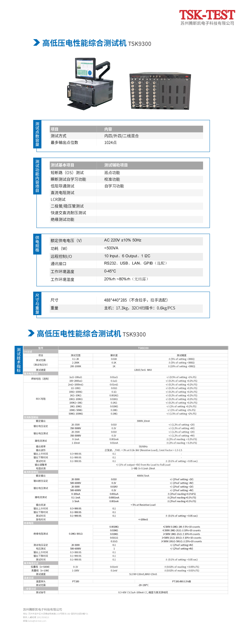 TSK9000系列是一款高性价比的综合性测试设备。特有的两线模式和四线模式自由切换,测量更精准。其中焊接电阻测试,最小显示到 0.1微欧!短断路、导通、元件、高压一体测试和回路自学习功能,让测试变的高效又便捷,给您的产线大大提升效率。